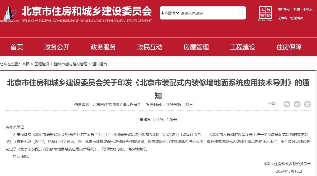 June和能參編——《北京市裝配式內(nèi)裝修墻地面系統(tǒng)應用技術導則》正式發(fā)布