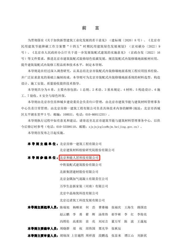 近日,由和能人居科技等多家單位專家學者參與編制的《北京市裝配式內(nèi)裝修墻地面系統(tǒng)應用技術導則》正式發(fā)布,該導則自發(fā)布之日起正式實施。