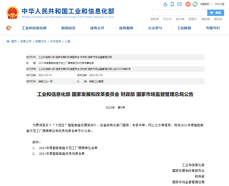 February和能網(wǎng)絡(luò)協(xié)同制造榮登工信部2021年度智能制造優(yōu)秀場(chǎng)景榜單
