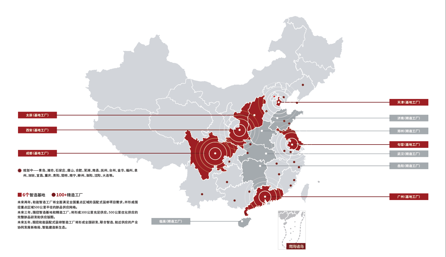 同時(shí),以全國(guó)六大部品智能制造工廠組成的工業(yè)4.0產(chǎn)業(yè)集群為跳板,通過實(shí)體制造工廠和數(shù)字工廠的雙輪驅(qū)動(dòng),和能智能制造車間可以滿足全國(guó)項(xiàng)目高標(biāo)準(zhǔn)內(nèi)裝建造需要的定制化主材部品供應(yīng)。