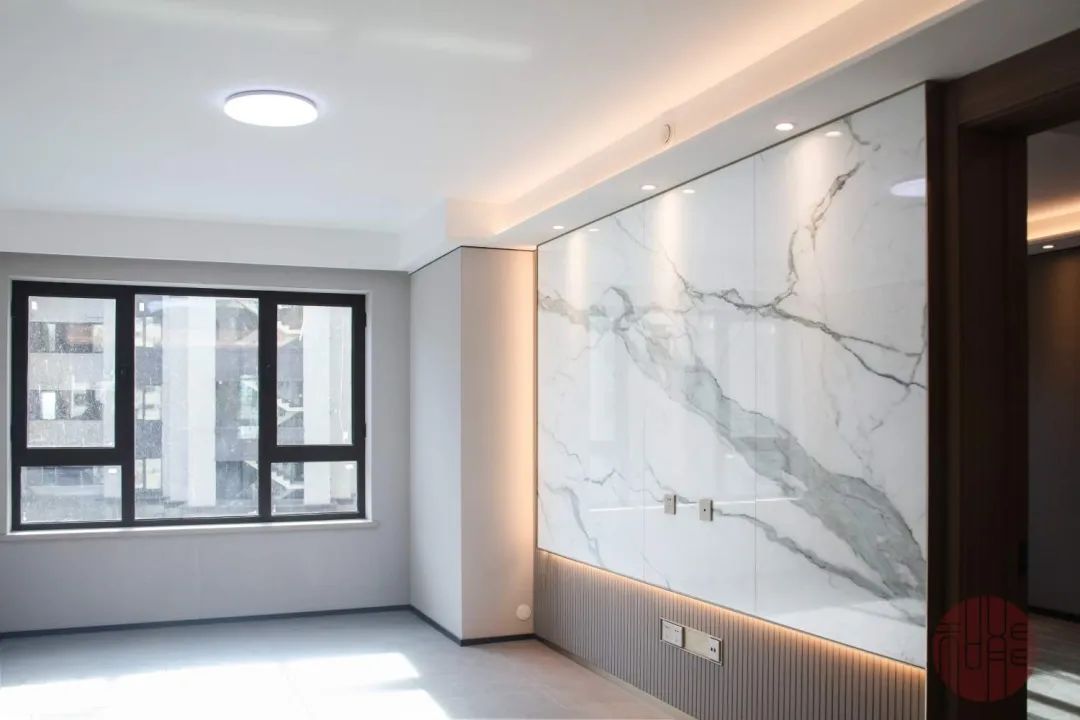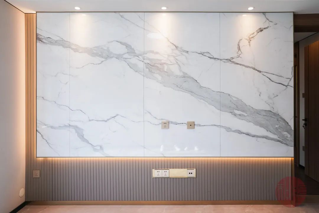 在樣板間,即便是簡單的墻板也可以千變萬化,例如進入龍湖云河硯樣板間的第一眼,客廳背景墻即是整個房間的點睛之筆,仿天然紋理的客廳背景墻,在豐富了感官體驗的同時,也為客廳融入了自然的氣息。這種和能墻板既大氣,又顯得上檔次,與現(xiàn)今流行的巖板背景墻有著異曲同工之妙。